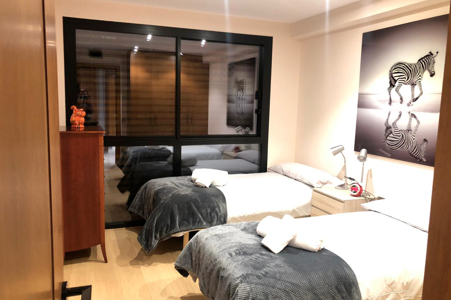 El pis compta amb un saló-menjador amb grans finestres i vistes panoràmiques a les pistes i muntanyes, cuina oberta totalment equipada, 3 habitacions (1 suite, 1 doble i 1 individual), 2 banys i lavabo de cortesia.