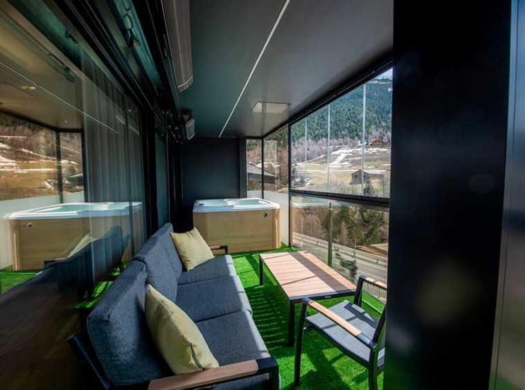 Distribuït en zona de dia i zona de nit, orientat al sud per gaudir de sol durant tot l’any. La terrassa de 21 m² inclou jacuzzi i cristalls retràctils, ideal per tot l’any.